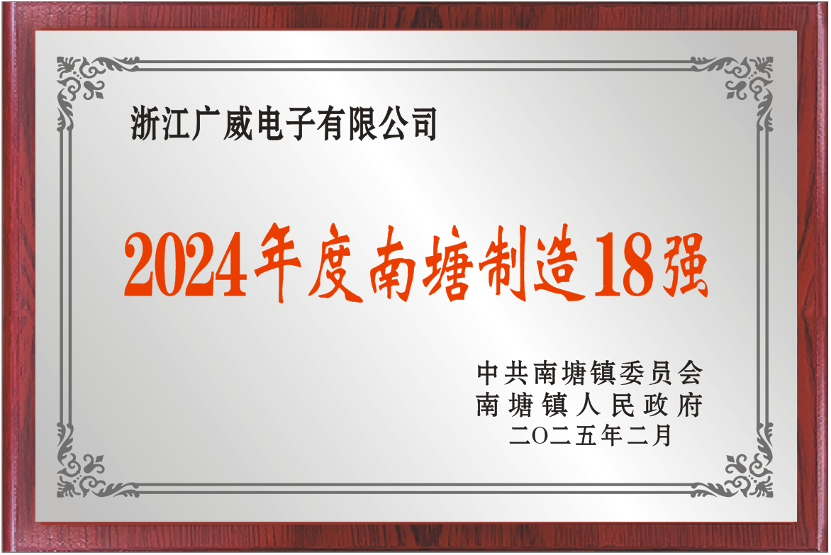 喜報|廣威電子榮膺南塘制造18強 2025-02-21 2025年2月21日,在南塘鎮政府舉辦的經濟高質量發展大會上,浙江廣威電子有限公司榮膺“202...